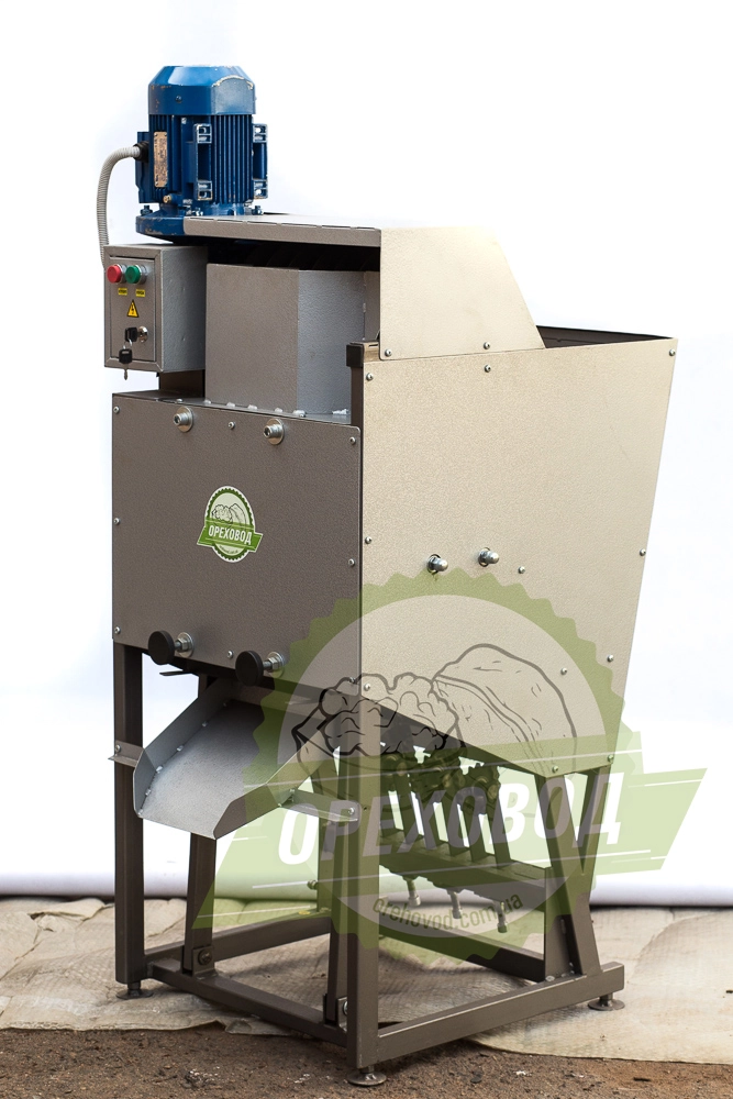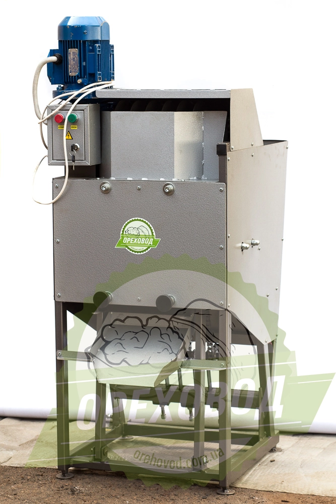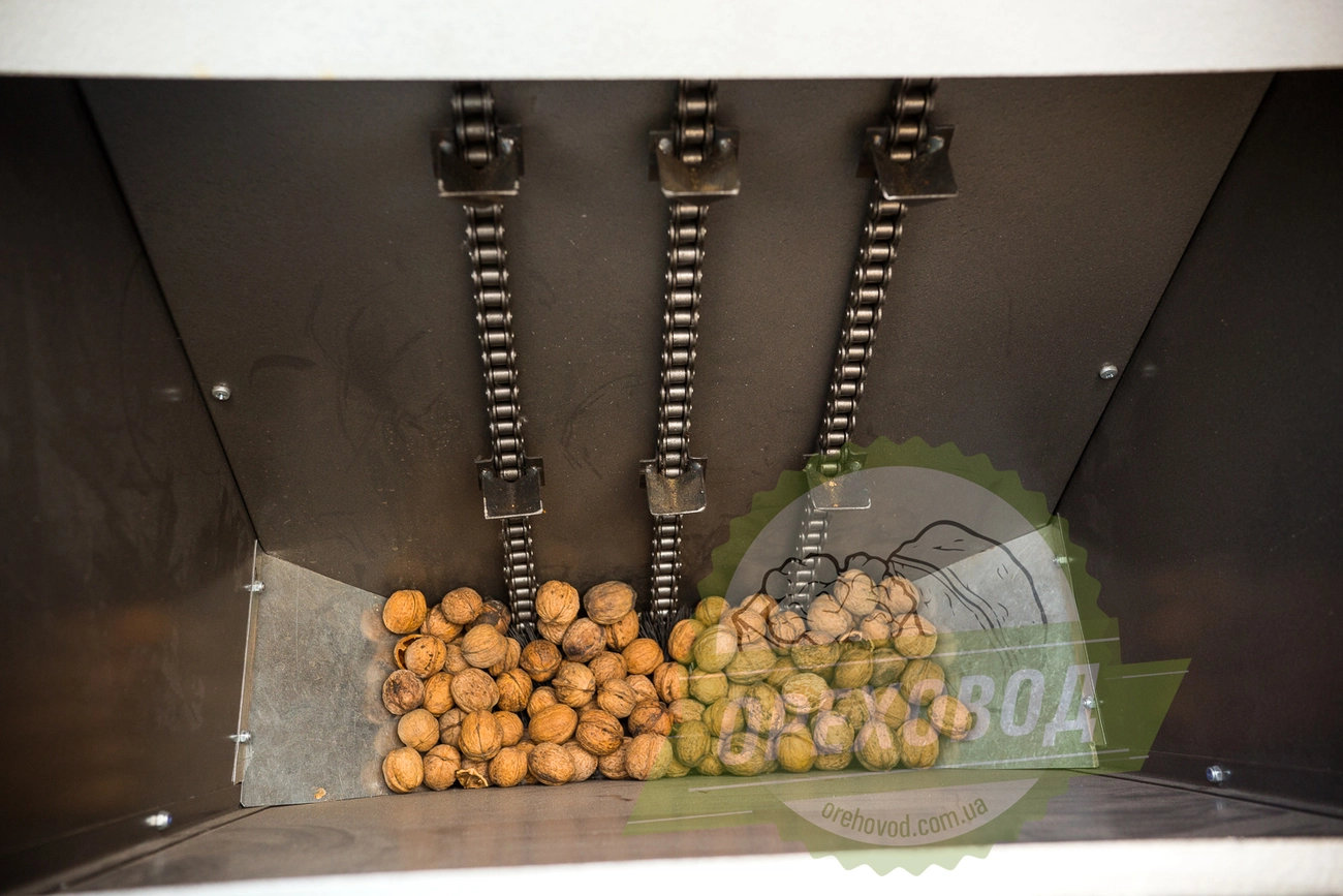 Орех загружается в бункер, после чего его захватывает